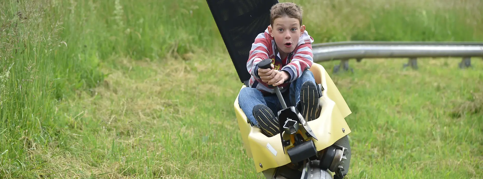 Thrills await on the 850 m summer toboggan run where you’ll reach speeds of up to 40 km/h, plus wild curves and a “special jump”.