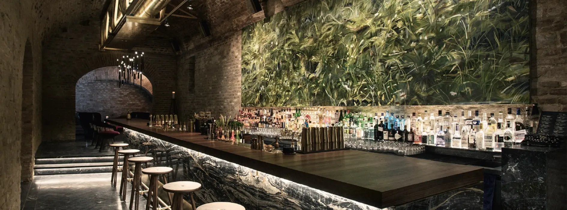 Blickfang ist eine sieben Meter lange Theke aus Marmor und Nussholz, kleine Nischen und versteckte Sitzlounges bieten jede Menge Rückzugsmöglichkeiten. Die extravagante Innengestaltung durch das Wiener Büro KLK wurde mit dem American Architecture Prize 2017 ausgezeichnet.