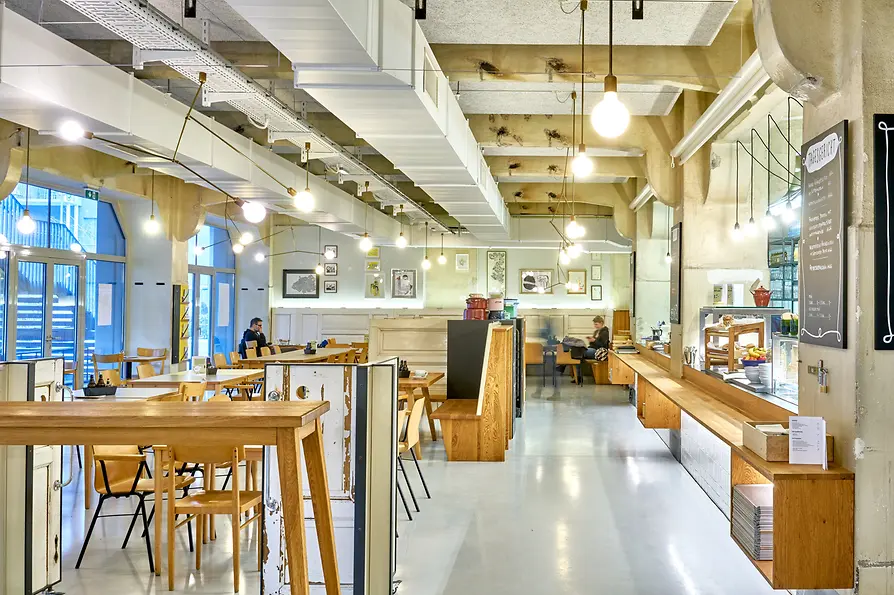 Zwischen den Galeriebesuchen in der Brotfabrik eine Kaffeepause in Magdas Kantine einlegen, wo Menschen mit geringeren Jobchancen eine Arbeitsmöglichkeit erhalten.