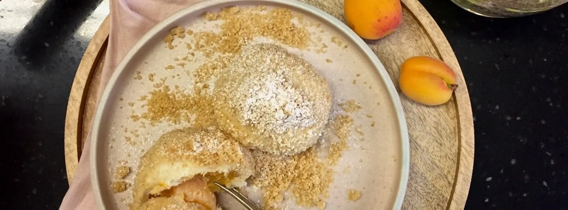 In der Zwischenzeit Marillen waschen, abtrocknen, und Kern mit Kochlöffelstiel herausdrücken. Den Würfelzucker in das entstandene Loch drücken. Einen großen flachen Topf mit Wasser bereitstellen, 1 Prise Salz zugeben. Aus dem Teig Kugeln formen, flach drücken, Marille reinlegen und mit Teig umhüllen. Enden mit den Fingerspitzen zusammendrücken und schöne runde Kugeln formen. Knödel anschließend in siedendes Wasser legen und zart wallend ca. 20 min kochen. Immer wieder vorsichtig umrühren.