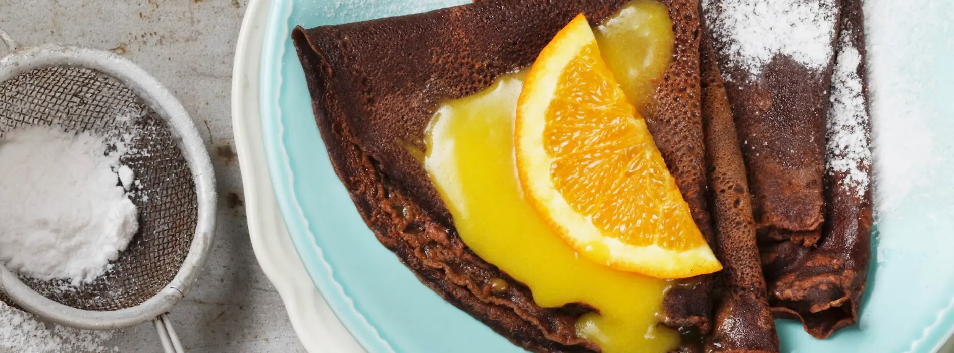 Kuvertüre im heißen Wasserbad schmelzen und leicht abkühlen lassen. Währenddessen Milch mit der aufgeschnittenen, ausgekratzten Vanilleschote aufkochen, kurz ziehen lassen und Schote wieder entfernen. Butter mit Mehl verkneten und nach und nach in die kochende Milch einrühren (so wird verhindert, dass sich Klumpen bilden). Brandteig so lange rühren, bis sich der Teig vom Topf schön löst. Etwas abkühlen lassen. Dann jedes Eidotter einzeln unterrühren. Zum Schluss geschmolzene Kuvertüre, Marillenbrand und Orangenschale einarbeiten. Eiklar mit einer Prise Salz und einem Drittel des Zuckers cremig aufschlagen. Dann portionsweise den restlichen Zucker darunter schlagen. Backrohr auf 220 °C vorheizen. Erst ein Drittel des Eischnees unter den Brandteig heben, dann den Rest mit der Gummispachtel oder einem Holzlöffel unterziehen. Butterschmalz in einer kleinen Pfanne schmelzen. Etwa einen Schöpflöffel voll Omelettenteig eingießen und glatt streichen. Wenn das Omelett unten goldbraun ist, für 5-7 Minuten ins heiße Rohr stellen, um es von oben trocknen zu lassen. Nächstes Omelett backen und dabei immer darauf achten, dass genug Butterschmalz in der Pfanne ist, aber dieses nicht zu heiß wird. Restliche Omeletts ebenso fertig backen. Omeletts nach Belieben füllen und zusammengeschlagen servieren.