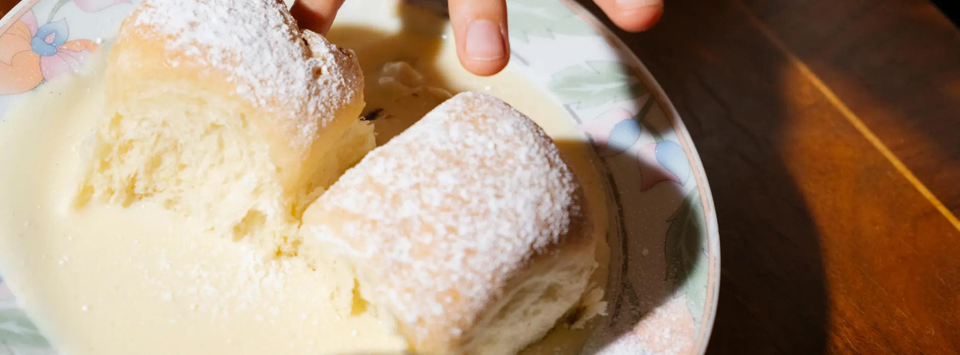 Aus dem Teig Scheiben mit ca. 6 cm Durchmesser ausstechen und die Teigenden nach oben zusammenschlagen. Nun jede Buchtel einzeln in flüssige Butter tauchen und mit der Teignaht nach unten dicht nebeneinander in eine gut eingefettete Form setzen. Im vorgeheizten Backrohr bei 180 °C etwa 20-30 Minuten goldgelb backen. Portionieren und vor dem Servieren mit Staubzucker bestreuen. Für die Vanillesauce Milch mit Vanilleschote aufkochen und 5 Minuten ziehen lassen. Dotter mit Zucker verrühren, Milch (ohne Vanilleschote) nach und nach darunter rühren und bei mäßiger Hitze so lange rühren, bis die Sauce leicht bindet. Topf in ein Geschirr mit Eiswasser stellen und abkühlen lassen. Währenddessen ab und zu rühren. In die erkaltete Sauce das halbfest ausgeschlagene Obers unterrühren.