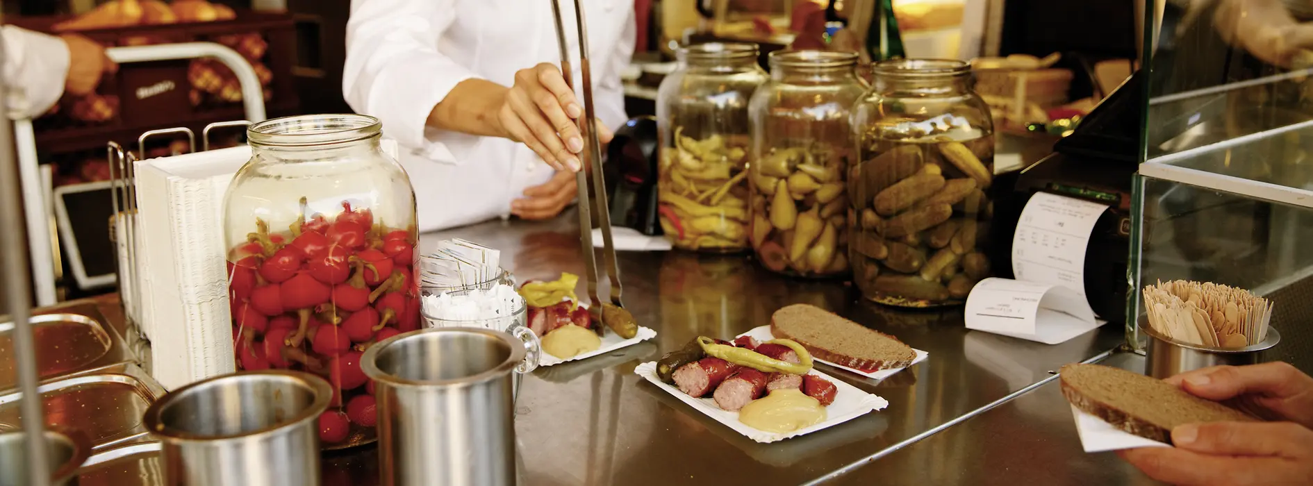 Kaiserlich speisen kann man beim Würstelstand Kaiserzeit. Neben dem traditionellen Wurstangebot inklusive mehrfach prämierter Blunzn (Blutwurst) gibt es auch heimische Schmankerl wie Gulaschsuppe oder Altwiener Suppentopf, die man an einem Würstelstand nicht erwarten würde.