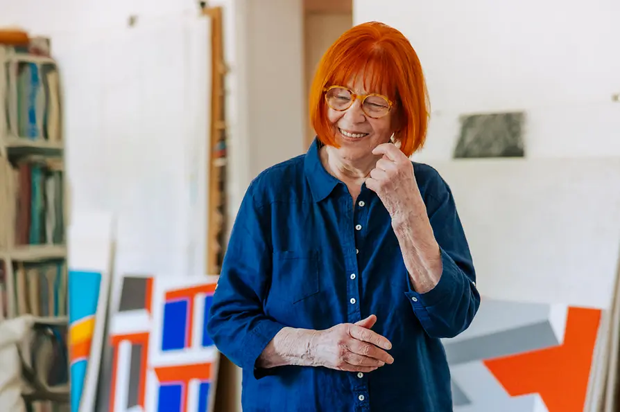 Ich wähle sehr intensive Farben. Formen mit scharfen Ecken und Kanten bringen den Kontrast noch besser zur Geltung. So verarbeite ich meine Emotionen.