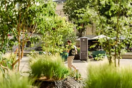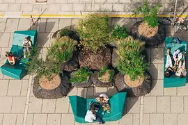 Das MuseumsQuartier hat es sich unter dem Motto "MQ goes Green" zur Aufgabe gemacht, das historisch versiegelte Gebiet zukunftsfit zu machen. Mit dem Ziel, bis 2030 klimaneutral zu sein, werden drei zentrale Maßnahmen gesetzt: eine Begrünung des Areals, ein ressourcenschonender Betrieb sowie künstlerische Projekt mit Umwelt- und Nachhaltigkeitsfokus. Seit 2023 werden im gesamten MQ-Areal nach und nach Bäume und Pflanzen integriert.