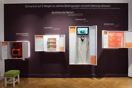Besucher:innen können sich auf Spurensuche durch das Leben, Wirken und Schaffen des Begründers der Logotherapie begeben. Es gibt eine aktive Auseinandersetzung mit persönlichen Sinn- und Existenzfragen (z. B. "Schuldig geworden – was nun?" oder "Wahre Liebe?"), auf die mit Frankls Thesen und Reden geantwortet wird. Den Besuchern wird damit ein persönlicher Weg zur Sinnfindung eröffnet. Die interaktiven Stationen bestehen u.a. aus Wendebrettern, Audio- und Videoausschnitten sowie Kästen, hinter denen sich Fragen und Antworten befinden.