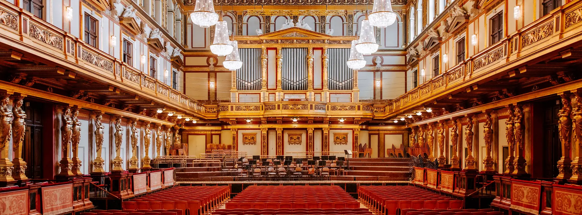 Der Große Musikvereinssaal, auch "Goldener Saal" genannt, ist für seine prachtvolle Ausstattung berühmt. Apollo und die Musen sind etwa ein Blickfang am Plafond, die Säulen sind als antike Frauenfiguren gestaltet. Ebenso unvergleichlich wie die Optik ist die Raumakustik – die dortigen Klangerlebnisse sind weltweit einzigartig.