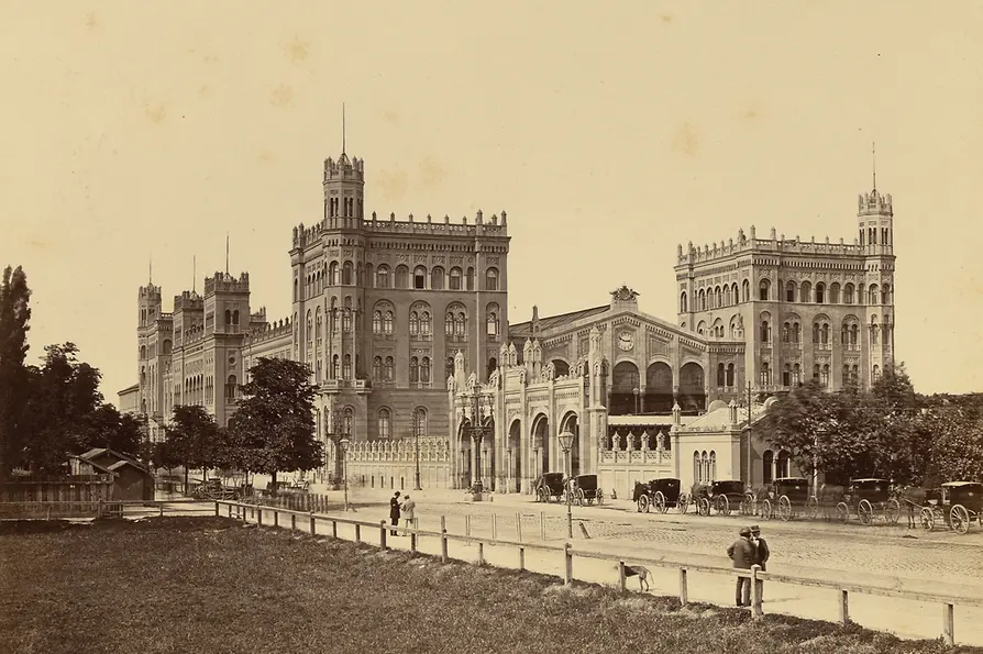 Zur Weltausstellung 1873 entstanden gleich 6 neue Bahnhöfe. Wien wurde schlagartig zur mitteleuropäischen Eisenbahndrehscheibe. Der imposante Nordbahnhof Wien (hier um 1870) war eine vielbesuchte Sehenswürdigkeit und stand bis 1965. Der Südbahnhof wurde 1874 errichtet. Heute befindet sich dort der hochmoderne Hauptbahnhof, Knotenpunkt für täglich 1.067 Züge und 124.500 Fahrgäste.