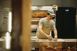 Bäcker Paul Thomann ist Quereinsteiger. Für seinen kleinen Laden in der Nähe des Donaukanals hat er sich bewusst für außergewöhnliche Öffnungszeiten entschieden. Sein Brot aus Bio-Zutaten gibt es im „das Tho“ nur nachmittags und abends zu kaufen. Damit reagiert Thomann einerseits auf den sich verändernden Alltag seiner Kund:innen, gleichzeitig vermeidet er es so in der Nacht zu arbeiten – aus zutiefst persönlicher Motivation. Alle übriggebliebenen Laibe vom Vortag gibt es stark verbilligt zu kaufen. Zusätzlich sorgen regionale Weine und Jause für einen gemütlichen Abend. Von Käse über Marmelade bis zur Salami: Thomann hat zu fast allen Produzent:innen der angebotenen Lebensmittel einen engen persönlichen Kontakt.