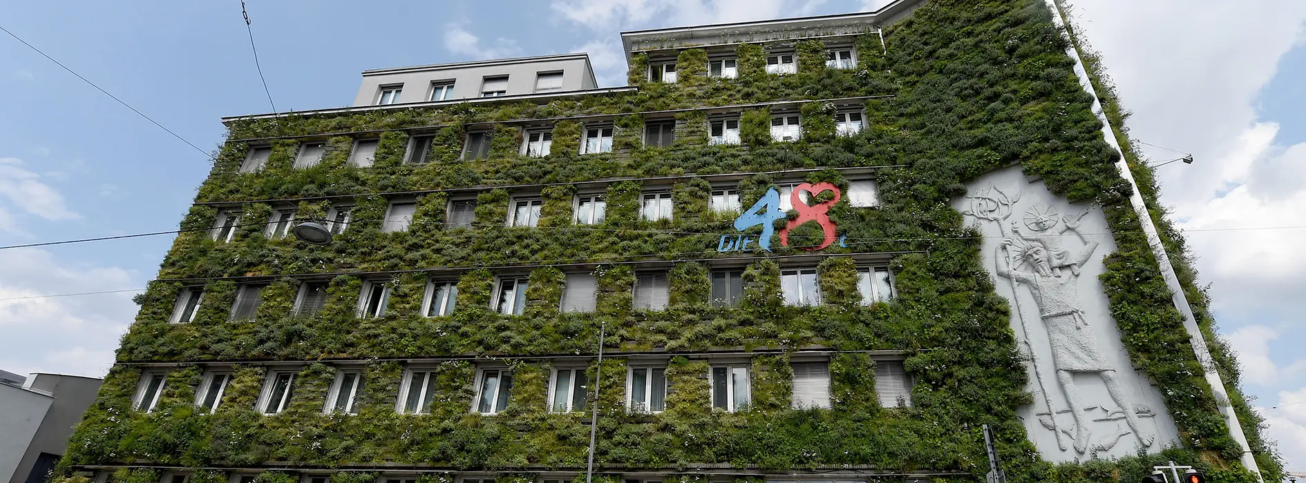 In Wien sorgte bereits in den 1980er Jahren der österreichische Künstler Friedensreich Hundertwasser mit seinen naturnahen Konstruktionen für Aufregung. Als „Architekturdoktor" machte er es sich zur Aufgabe, sterile Bauten umzugestalten, indem er unregelmäßige Strukturen und Vegetation harmonisch einfließen ließ.