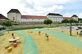 2010 wurde der neu gestaltete „Untere Garten" eröffnet. Der 12.500 m² große Park von Schloss Neugebäude liegt exakt auf der Fläche des historischen Schlossgartens. Die für die Renaissance typischen, rasterförmigen Gartenfelder und Wegstrukturen wurden beibehalten, jedoch mit modernen Akzenten versehen. So gibt es Wasserspiele mit Springbrunnen, 70 Schirmplatanen spenden Schatten, eine Allee aus Flieder lädt zum Flanieren ein. Wackeltiere wie Tiger und Löwe, eine Elefantenrutsche und eine Schaukelgiraffe erinnern an die einstige Menagerie von Schloss Neugebäude, der ersten Menagerie Wiens. Schloss Neugebäude ist nur eines der vielen Outdoor-Areale in Wien und ermöglicht es, einen Tag in Wien in der Natur zu verbringen.