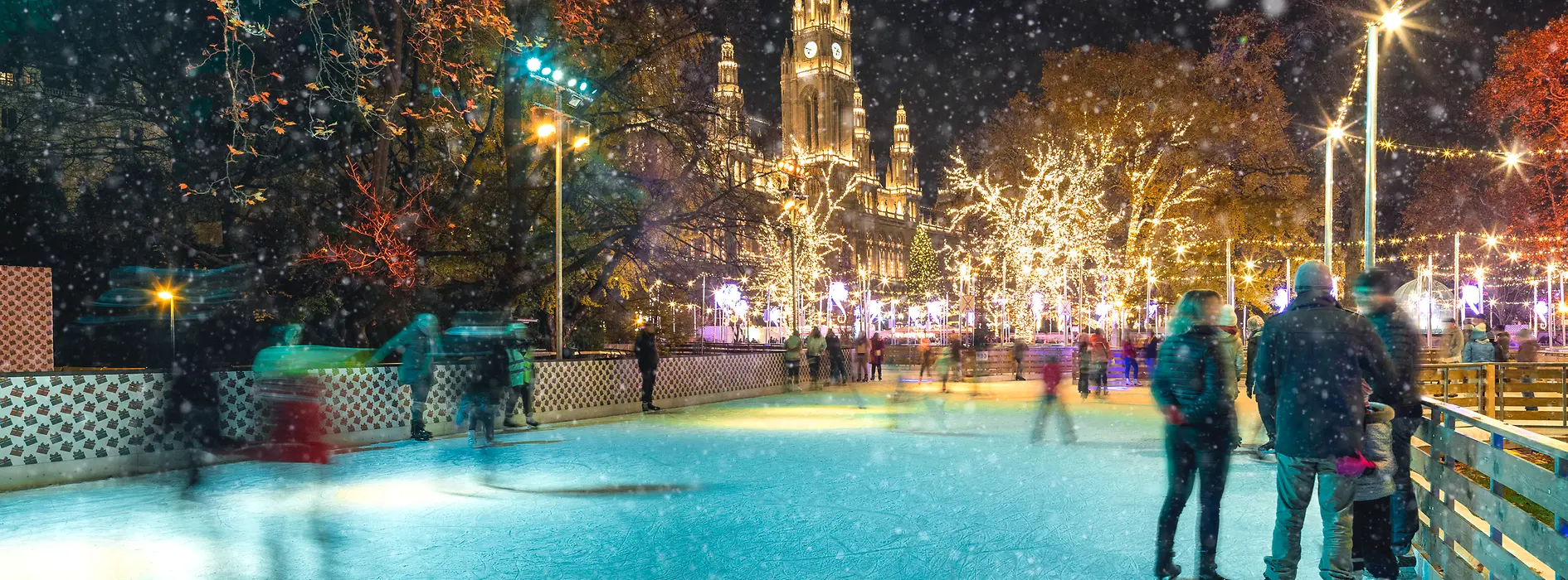 Wien hat viele einzigartige Eislaufplätze zu bieten, wie etwa die Kunsteisbahn Engelmann. Das Besondere: Sie liegt im 17. Bezirk auf dem Dach eines Wohnhauses. Lust auf ein Wiener Wintermärchen? Ab Mitte Jänner können Sie beim Wiener Eistraum vor der prachtvollen Kulisse des Rathauses auf den romantischen Pfaden durch den märchenhaft geschmückten Rathauspark gleiten. Außerdem drehen die Wiener:innen seit mehr als 100 Jahren ihre Runden am Eis des Wiener Eislaufvereins gleich neben dem Wiener Konzerthaus.