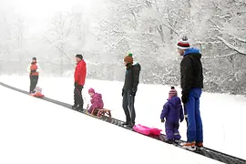 Wer bei Schnee eine Aktivität für die ganze Familie sucht, geht am besten rodeln. Kleinere Hügel gibt es in den Wiener Parks zur Genüge - zum Beispiel auf der Jesuitenwiese im Wiener Prater. Die Dollwiese in Hietzing hat hierfür sogar ein 100 Meter langes Förderband, das alle Wintersport-Freund:innen bergauf befördert. Neben den Rodler:innen machen auch junge Skifahrer:innen ihre ersten Erfahrungen auf zwei Brettern.