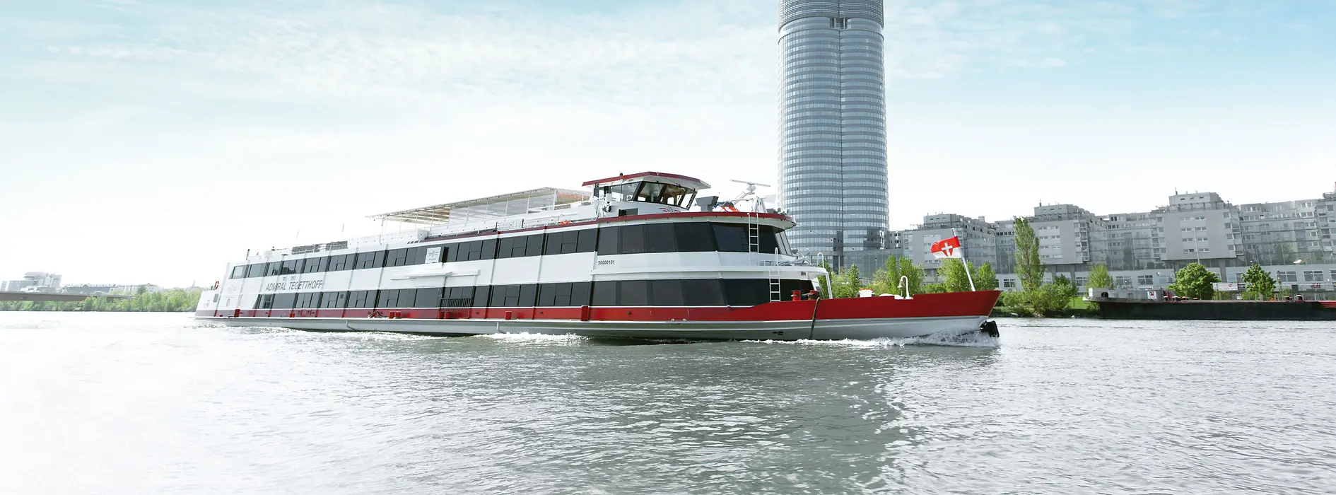 Der Twin City Liner - ein eigens für die Donau gebauter Katamaran - verkehrt in der wärmeren Jahreszeit viermal täglich vom Schwedenplatz in der Innenstadt zwischen Wien und Bratislava.