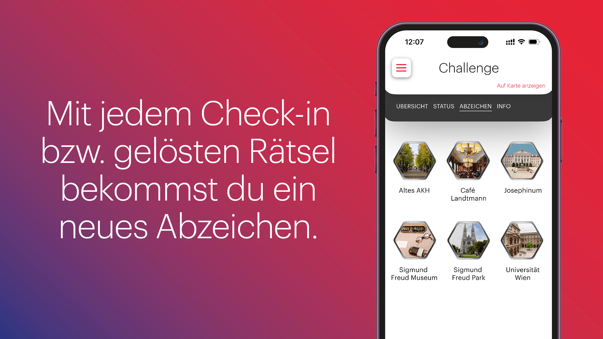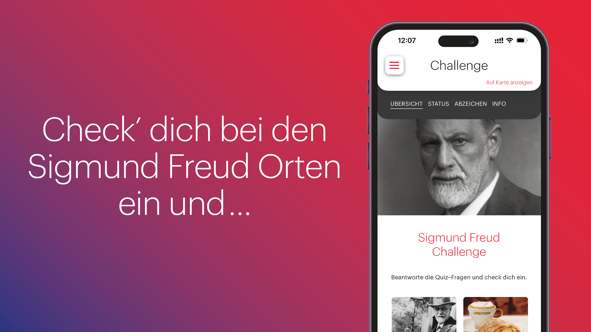 Im Rahmen der Challenge musst du besondere Wiener Orte besuchen, die im Leben und Wirken von Sigmund Freud eine große Rolle gespielt haben. Und so funktioniert es: Um Punkte für die Challenge zu sammeln, musst du dich an 6 Orten in Wien mit deinem Smartphone digital einchecken und pro Ort 3 Quiz-Fragen beantworten.