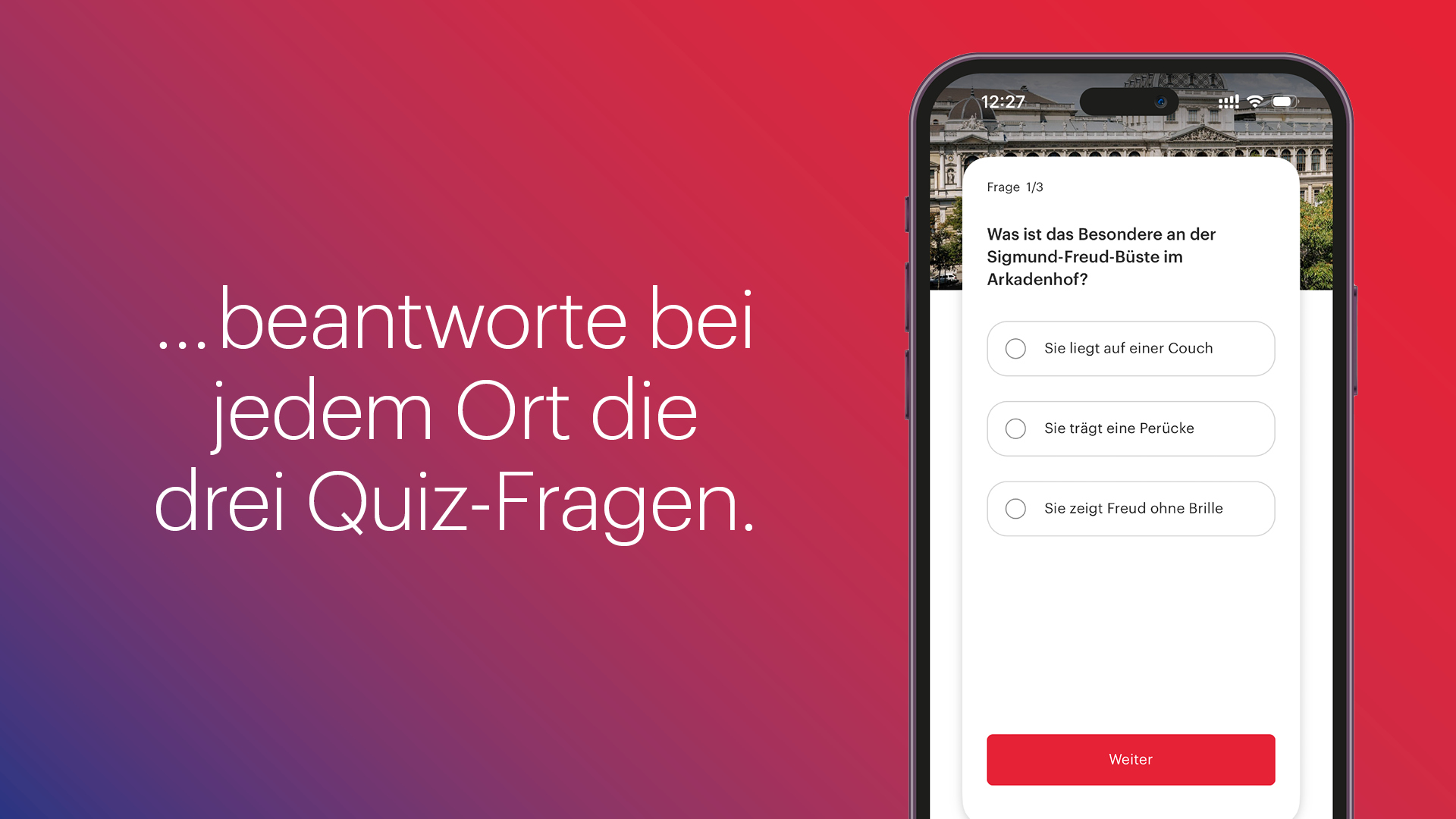 - Die Standort-Freigabe auf deinem Smartphone wird benötigt, um an der Challenge teilzunehmen. Du musst aber nicht in Wien sein, um die Quiz-Fragen zu beantworten. Um dich für den Monats- oder Hauptgewinn zu qualifizieren, musst du aber in Wien sein und die Sigmund Freud Orte besuchen.