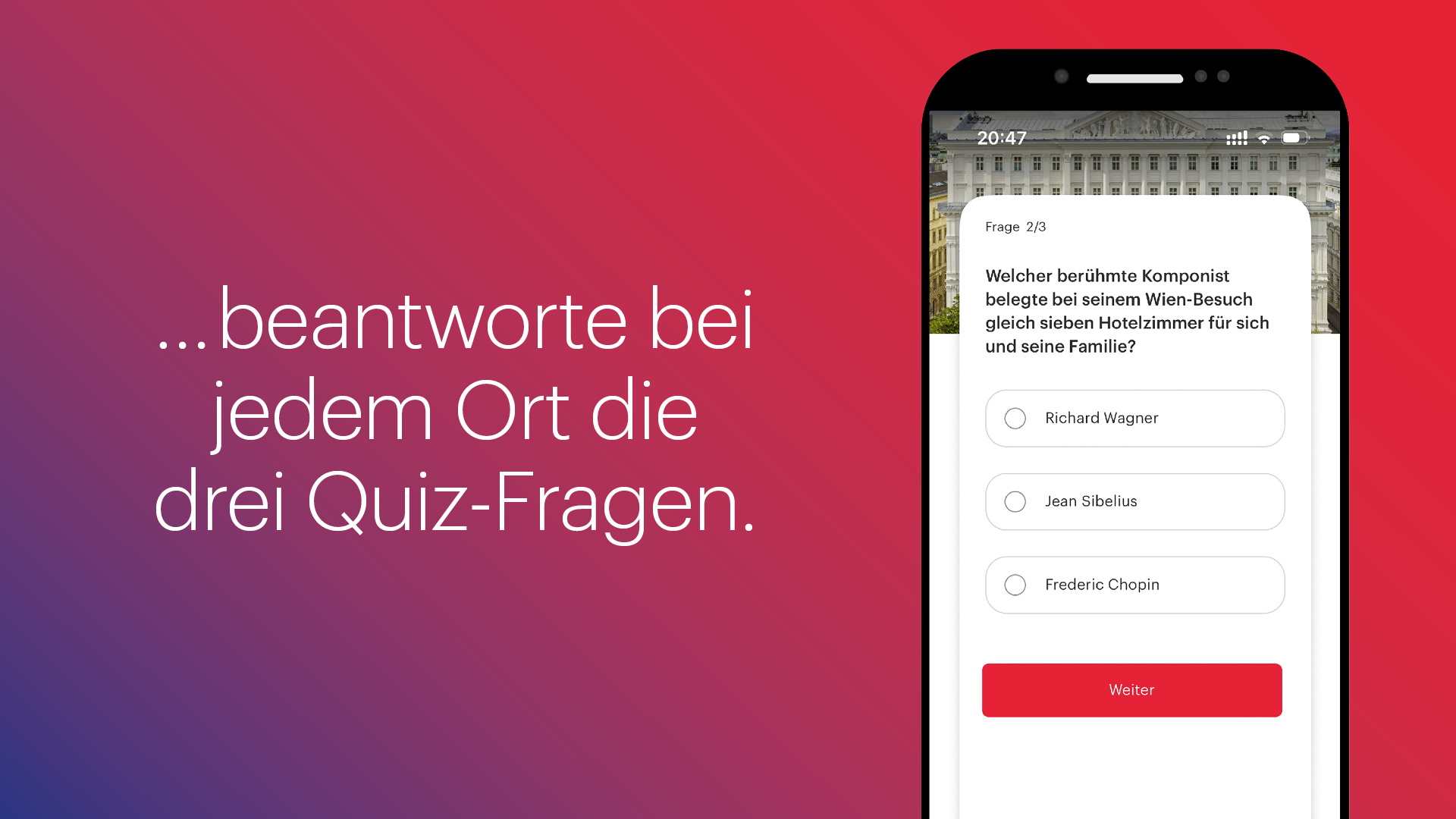 - Die Standort-Freigabe auf deinem Smartphone wird benötigt, um an der Challenge teilzunehmen. Du musst aber nicht in Wien sein, um die Quiz-Fragen zu beantworten. Um dich für den Monats- oder Hauptgewinn zu qualifizieren, musst du aber in Wien sein und die Sigmund Freud Orte besuchen.