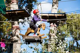 - Für Kinder ab einer Körpergröße von 1,10 Meter. Eintritt zum Hochseilklettergarten auch ohne Badeintritt möglich (Details siehe Website).