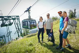 In weniger als acht Minuten geht es den Berg hinauf – mit dem Online-Buchungssystem lässt sich bereits zu Hause bequem das Ticket sichern. Oben am Rax-Plateau angekommen, begeben sich Wandergäste und Naturinteressierte auf die Spuren legendärer Alpinist:innen, Schriftsteller:innen und Poet:innen. Fernab von der Hektik des Alltags haben bereits Sigmund Freud und seine Zeitgenoss:innen die Rax wertgeschätzt. Auch die Habsburger hatten hier eine Sommerresidenz.