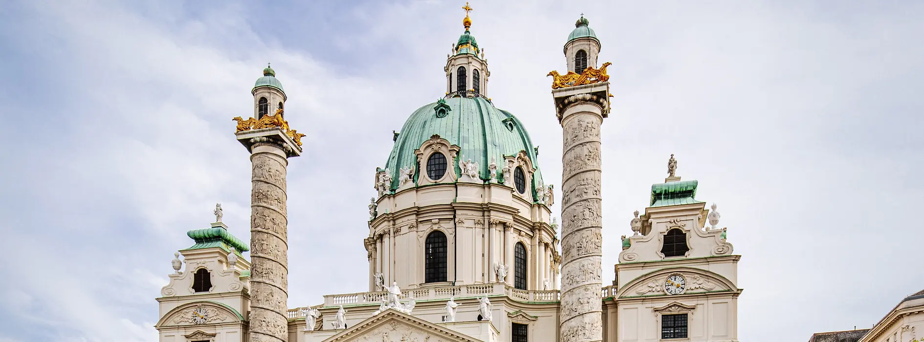 Die Karlskirche ist das letzte große Bauwerk des barocken Stararchitekten Johann Bernhard Fischer von Erlach. 1739 vollendet, erfolgte der Bau auf Grund eines Gelübdes von Kaiser Karl VI. während einer Pestepidemie. Geweiht ist die Kirche dem Namenspatron des Habsburgerkaisers, dem Hl. Karl Borromäus. Dessen Leben und Wirken ist auf den beiden Riesensäulen (47 Meter) neben dem Eingangsportal dargestellt. Die üppigen Kuppelfresken von Johannes Michael Rottmayr umfassen 1.250 m² Farbenpracht.