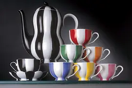 Wenn von Porzellan aus Wien die Rede ist, darf natürlich Augarten nicht fehlen. Als eine der ältesten Porzellanmanufakturen blickt Augarten Wien auf eine über 300-jährige Geschichte zurück. Heute wie damals wird Augarten Porzellan von Hand gefertigt und bemalt. Die Designs werden seit Bestehen der Manufaktur in Kooperation mit namhaften Künstler:innen kreiert. Die „Wiener Rose“ ist ein bekanntes Dekor aus dem Biedermeier, aus 1929 stammt das weltberühmte Melonenservice von Josef Hoffmann. Zeitgenössische Designer:innen wie Marco Dessi arbeiten an modernen Formen und reduziertem Dekor, setzen gleichzeitig aber die 300-jährige Tradition kontinuierlich fort. Neben den klassischen Produkten wie Tafelgeschirr findet sich bei Augarten auch so manch lustiges Dekorationsstück: etwa der Froschkönig Fridolin oder eine Porzellandose in Krapfenform.