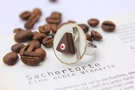 Ein witziges Porzellan-Souvenir aus Wien ist die handgefertigte Schmuckserie "Kaffeehaus am Ring" von Andrea Steinhauser. Ihre Kollektion besteht aus Metallringen, die von kaffeehaustypischen Motiven aus Porzellan geziert werden. So kann man Sachertorte, Melange, Punschtorte, Wiener Frühstück oder gar Würstel mit Senf und Semmel am Finger tragen. Die Motive gibt es teilweise auch als Ohrringe, Broschen oder Kettenanhänger. In welchen Wiener Shops die Produkte erhältlich sind, erfahren Sie unter www.kaffeehausamring.at/shops/