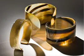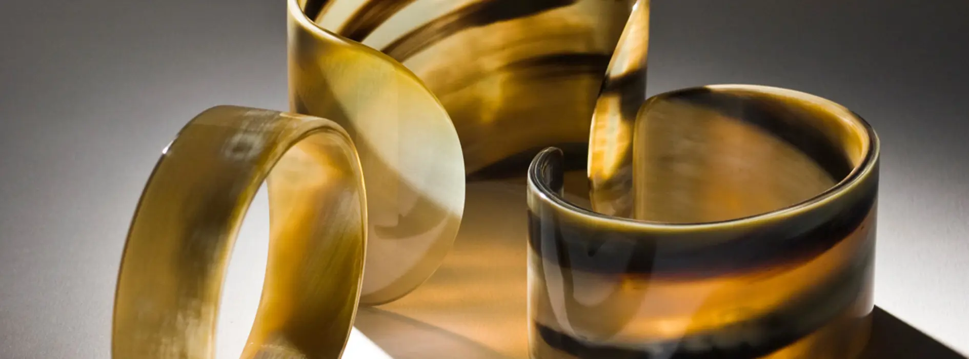 Ausschließlich mit Horn arbeitet Schmuckdesignerin Anita Münz. Aus dem edlen Material produziert sie Ketten, Broschen, Ringe, Armreifen und Ohrringe in klaren Formen und verkauft die Unikate in ihrem Studio im 7. Bezirk.
