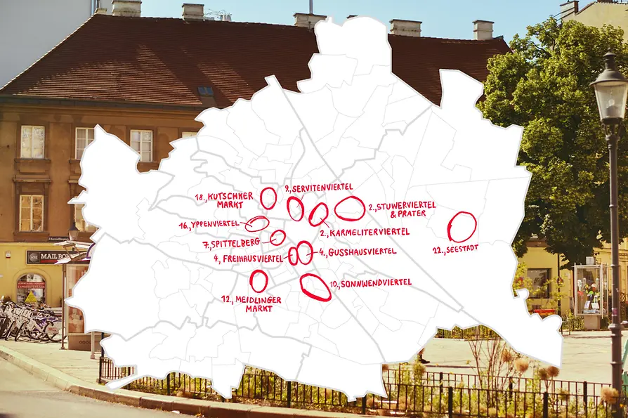 Kostenlos downloadenWiens Grätzel sind bunt und lebendig. Tauchen Sie ein in die Vielfalt und einzigartige Atmosphäre der pulsierenden Wiener Stadtviertel.