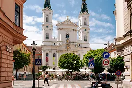 Die namensgebenden Piaristen, ein im 17. Jahrhundert gegründeter katholischer Männerorden, begegnen uns rund um das Herzstück des Viertels – am Jodok-Fink-Platz. Hier thront die Piaristenkirche Maria Treu, ein barocker Prachtbau mit Deckenfresken des Malers Franz Anton Maulbertsch. Die Kirche bietet eine malerische Kulisse für das gastronomische Treiben am Platz davor: das Treu am Platzl, ein Café-Restaurant mit tollem Brunch-Angebot, und das italienische Restaurant Il Sestante (mit Pizzen aus dem großen Holzofen) bilden einen der schönsten Gastgärten Wiens. Im heimeligen Café der Provinz, das im französischen Landhaus-Stil eingerichtet ist, gibt es Waffeln und Crêpes, am Wochenende auch Brunch-Buffet.