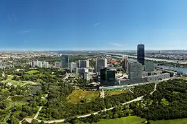 Aussichtsterrasse (in 150 m Höhe) über einen Lift barrierefrei erreichbar (max. 3 Rollstühle gleichzeitig). Dort gibt es spezielle Rampen (Breite: 99 cm, Höhe: 25 cm), damit auch Rollstuhl-Benutzer/innen den Blick über Wien genießen können.
