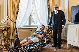 Wie oft hat Michael Moser seine Gäste über den imperialen Stiegenaufgang des Hotel Imperial geführt? In 31 Jahren als Chefconcierge waren gekrönte Häupter, aber auch Weltstars aus dem Showbiz wie Michael Jackson, Barbra Streisand oder Brad Pitt und Angelina Jolie dabei. Dieses Mal ist es Christoph Pehofer, den es sonst selten in ein Hotel verschlägt, geschweige denn in ein Luxushotel. Er ist Couchsurfer - das bedeutet, er stellt in seiner eigenen Privatwohnung einen Schlafplatz zur Verfügung und nutzt auf Reisen in der ganzen Welt auch die Sofas und Luftmatratzen seiner Gastgeber:innen. Würde er auch im Hotel Imperial die Couch dem vergoldeten Bett vorziehen?