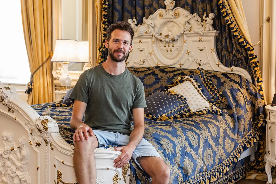 Da staunt Christoph Pehofer nicht schlecht, als ihm Michael Moser die Flügeltür zum Fürstenzimmer öffnet. Mit seinem Reisebudget für einen Monat in Indien könnte er im Hotel Imperial eine Nacht verbringen - wobei er dann nicht hier in dieser Suite übernachten würde. Nichtsdestotrotz sieht Couchsurfer Pehofer Hotelzimmer fast nur noch auf Reisen mit den Eltern.
