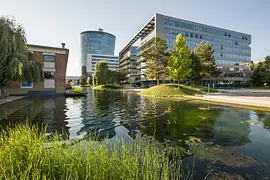 Bei der U2-Station Krieau wird es unerwartet idyllisch, dort stoßen architektonische Ästhetik, Natur und Innovation aufeinander: Das Viertel Zwei ist ein idealer Standort für Unternehmen, aber auch ein einzigartiges Lebens- und Arbeitsumfeld für tausende Menschen.
