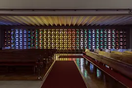 Catholic? Psychedelic! - The striking formal language of the 1950s also found its way into some of the city’s places of worship. The best example is Neuerdberg Catholic parish church where the interior has an almost psychedelic vibe. This is due to the special construction of the stained-glass windows patented by the Viennese sculptor Erwin Hauer. Hauer later emigrated to the USA, where he installed windows using the same system in numerous churches.
