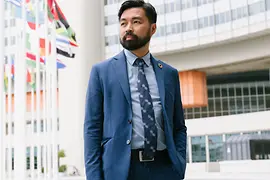 Manzano has been a member of the UN visitor team for three years now and feels very much at home in Vienna. As someone who also works as a photographer, he was particularly taken with the historic city’s architecture. “Vienna is like an open-air museum. There’s something to discover around virtually every corner, from the magnificent facades of the old apartment buildings to the courtyards that typically feature in Viennese architecture, such as the Adlerhof in the seventh district." But the city also has a lot to offer in other respects, he adds: "My favorite place to retreat is the French-inspired Augarten. If I have visitors, we’ll head to the Kahlenberg hill – there are magnificent views of the city to be had from up there. And although I'm not a coffee drinker myself, I still really enjoy the cozy Viennese coffeehouse culture. The hustle and bustle of the Brunnenmarkt is a multicultural hotspot." The confluence of so many nations in one place is an integral part of the VIC’s atmosphere: “For me, it is the epitome of Vienna’s international mindset.” During his breaks, Manzano enjoys walking through the interconnected office buildings with their orange stairwells and elevators. "The furniture is still original 1970s," Manzano declares brightly. "I'm always discovering new parts of the complex. For example, I only came up to the eighth floor for the first time now, where the interpreter booths are."