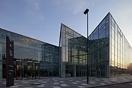 The overall setup is not only the work of numerous national and international architects, but also of the Austrian Federal Monuments Office. Not everything that glitters here is in fact new. Many of the existing buildings on this historic site have been preserved. These include the listed stables and grandstands of the Krieau harness racing track. Among the first reinforced concrete buildings to be built in the Art Nouveau style, they were completed between 1912 and 1914 by Otto Wagner's students Marcel Kammerer, Otto Schönthal and Emil Hoppe. And in 2021 they were given a new lease on life. Today, they are used as state-of-the-art offices. Races still take place here to this day.