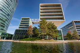 One of the reasons for this was the underlying concept, which was carefully thought through right down to the smallest detail: occupying 160,000 square meters, the site includes 13,000 square meters of green spaces, a lake, a fountain, three kindergartens a school, in future two new hotels and a student dorm as well as numerous bars and restaurants for the all-important feel-good factor. An attractive prospect for businesses, as well as residents and outsiders who visit and end up wanting to come back time and again. Construction will continue until 2026, with a residential building, an office property and an elementary school still to come. Once finished, 15,000 people will live and work here – in a slice of urban planning heaven.