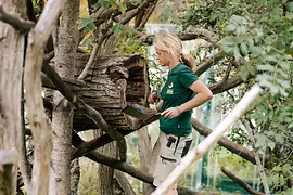 The zoo workers’ job also involves keeping the animals occupied so that they don’t get bored. Enrichment is the name of the game. It involves things like putting food in hard-to-reach places or setting up a ball pool for the red pandas. The zoo also has an educational remit. “This means that we are always there to provide an explanation if a visitor has a question. It’s part of the job, it’s enjoyable and it helps get people interested in protecting endangered species.”