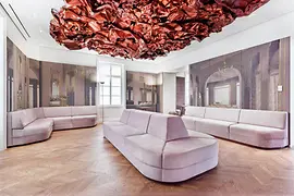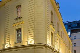 The "metamorphosis" into a modern art temple began in summer 2020. This involved completely gutting the inside of the building and then creating a basement level. The entire façade, which was retained in the historical style, was painstakingly renovated. Special highlights of the Heidi Horten Collection: Staggered, seemingly floating exhibition levels with a self-supporting stainless steel staircase, the connected terrace, a tea room, and a freely accessible museum forecourt with sculpture garden.The result is a true museum island embedded in a classic Viennese Gründerzeit complex.