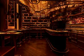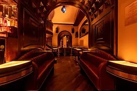 The bar also impresses visually. Brass, dark wood and leather play a big role here. The tables of onyx and marble are illuminated. All of this ensures a cozy, warm and timeless atmosphere. Musically, the style is towards funk, soul, disco and house.