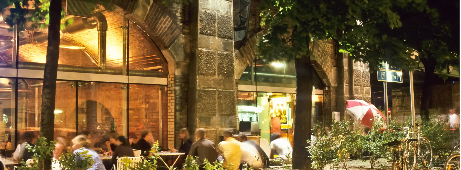 Today as well, concerts ranging from advanced electronic to experimental rock regularly take place in the Rhiz on Vienna's Gürtel, in the midst of two three-lane motorways and right beneath the rails of the U6. DJs play to the bar with an eclectic, in parts difficult, but always passionate selection of music, while people also dance on the tables here at the weekends to beats and basses.