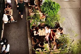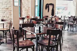 Design isn't important here. The place lives from its oversized windows, the pleasant wooden floor and the minimalist bar. If you can find a place at a table in the window niches, you'll have a bit more peace and quiet, and won't be sitting in the midst of the throng.