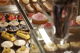 Ella's Twins on Vorgartenmarkt also offers a mix of traditional and modern patisserie and chocolaterie to nibble on. The sweet temptations range from Punschkrapferl (rum-flavored pastry) to fresh and fruity maracuja-chocolate slices.