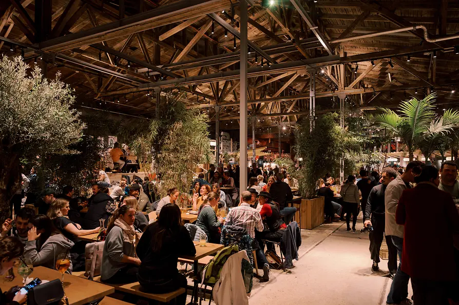 Food and drinks are available at the various stands, which you can then take with you to sit down at one of the many inviting wooden tables in the middle of the hall. There are three stages where concerts also take place. In summer there is also a large outdoor area. Culinary events also take place regularly in the Gleisgarten.
