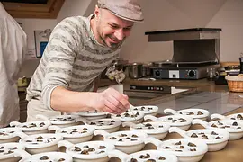 The producers include a number of creative spirits who have spotted and successfully established themselves in various niches. One of them is snail breeder Andreas Gugumuck. He transformed his family’s 400-year-old smallholding in Vienna’s southern outskirts into a snail farm. Initially, his idea of setting up his own farm to breathe new life into traditional Viennese escargot breeding raised a few eyebrows. But thanks to a lot of grit and determination, he was able to talk numerous restaurants in the city into putting dishes featuring Viennese escargots back on their menus. Gugumuck is more than happy to give visitors an entertaining tour of his farm punctuated with numerous snail-based anecdotes. His free-range mollusks get all the nutrition they need from organic plants and herbs.
