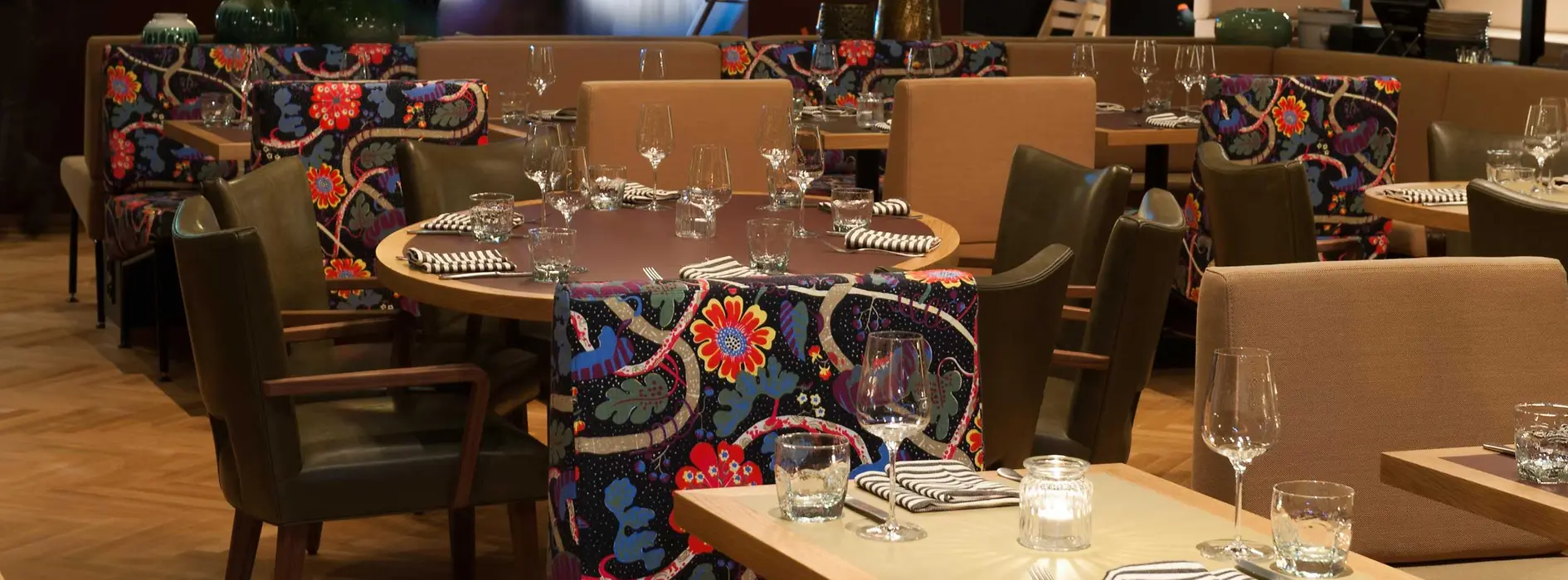 Visually, the restaurant goes perfectly with the MAK. Chairs by Oswald Haerdtl and Ernst Schwadron, lamps by Kalmar, upholstery by Josef Frank and flatware from Copenhagen get designer’s pulses racing. Despite its size, the restaurant appears very cozy, which was certainly no easy undertaking in the design process.