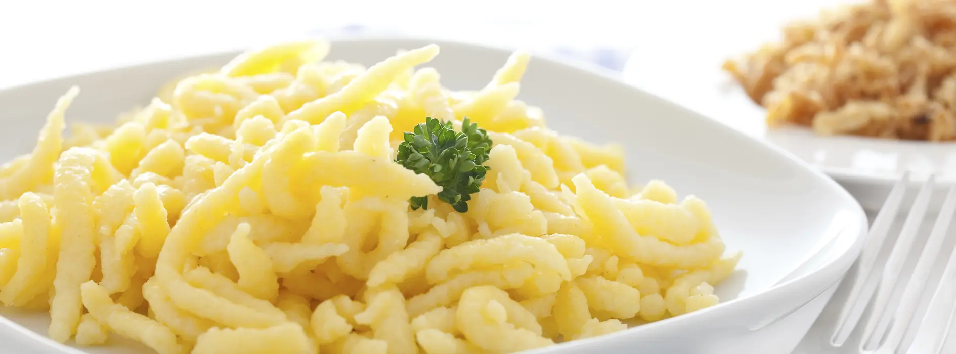 Bring saltwater to boil in a large pot. Using a spaezle slicer, let the batter drip directly into the boiling water (otherwise the dumplings will stick together). As soon as the dumplings begin to float at the top of the water, drain them and douse with cold water. Dribble in a few drops of oil, and stir through so the dumplings don't stick together.