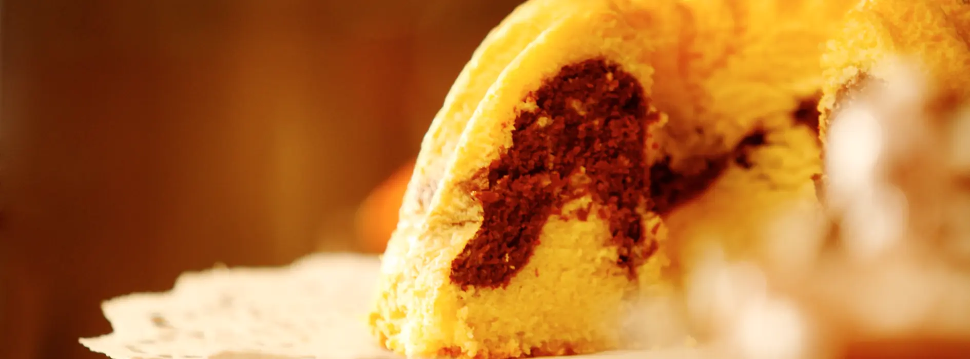 Grease the Gugelhupf mold with butter, and dust with flour. Now fill the form alternately with the light and dark mixture. Pull a wooden spoon through the mixture to get the marble effect. Bake in a preheated oven at 180° C for about one hour.