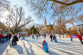 Vienna has many unique skating rinks to offer, such as the Engelmann artificial ice rink. Its special feature? – It's situated on the roof of an apartment building in the 17th district. Fancy a Viennese winter fairytale? From mid-January, you can glide in front of the magnificent backdrop of City Hall on the romantic paths that wind their way through the fairytale decorations of City Hall Park at the Vienna Ice World. The Viennese have also been taking turns on the ice of the Vienna Ice Skating Club right next to the Wiener Konzerthaus for more than 100 years.