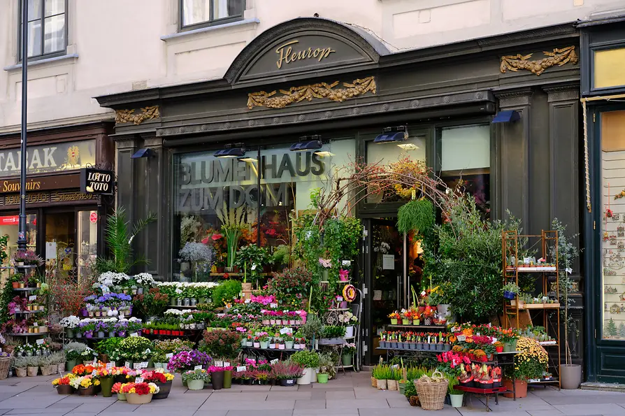 Flower stores complete the green image of the city in many places, like the Blumenhaus zum Dom. A truly green oasis is the Roman Market Hall in the former stock exchange on Schottenring. That's hardly surprising. After all, the Lederleitner flower shop, whose magnificent blooms and colors also adorn Restaurant Hansen in the Market Hall, one of the many Viennese restaurants with the green extra.